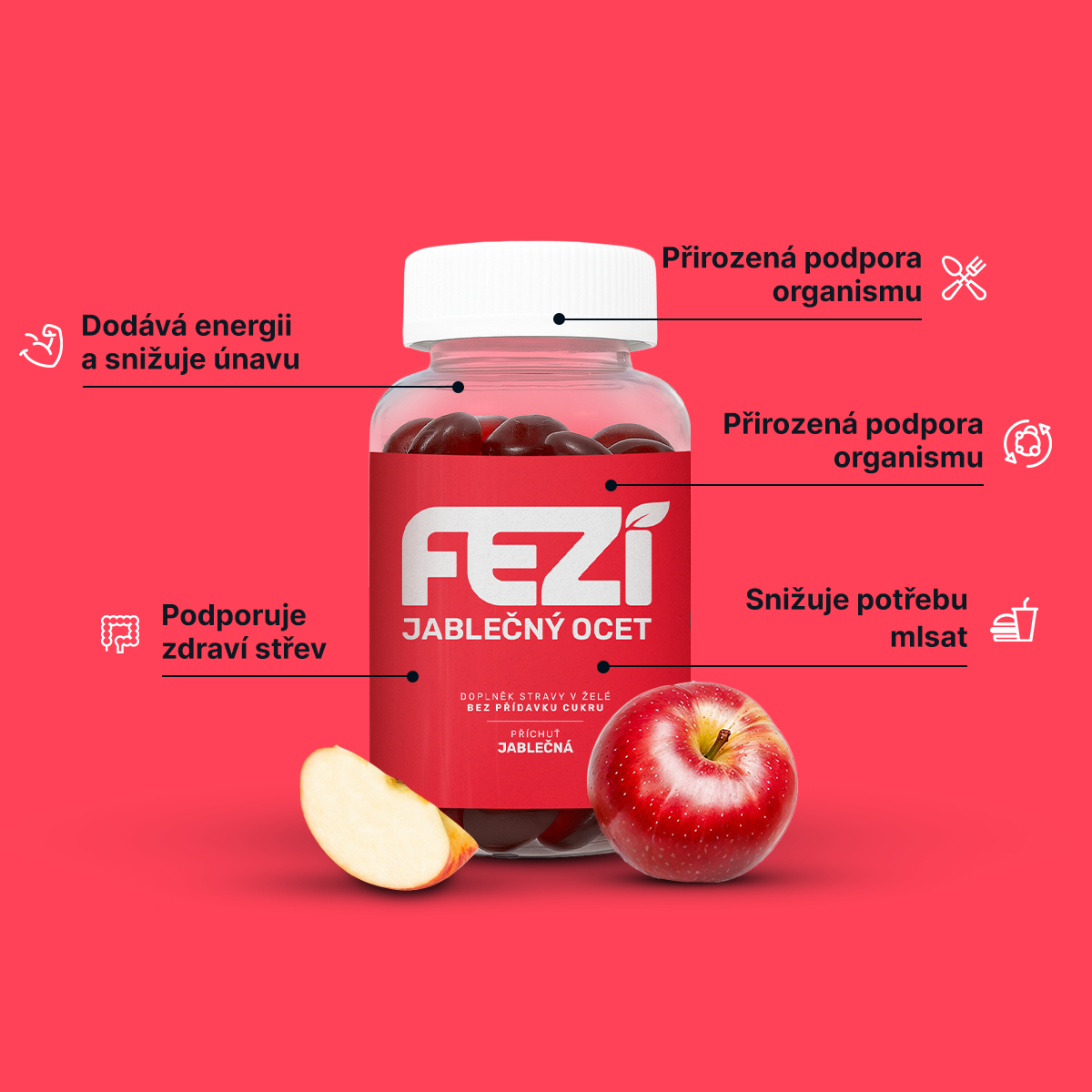 FEZI Jablečný ocet je moderní forma klasické složky, která podporuje metabolismus a každodenní pohodu. Bez kyselé a nepříjemné chuti – jen to, co váš organismus potřebuje, aby fungoval v harmonii.